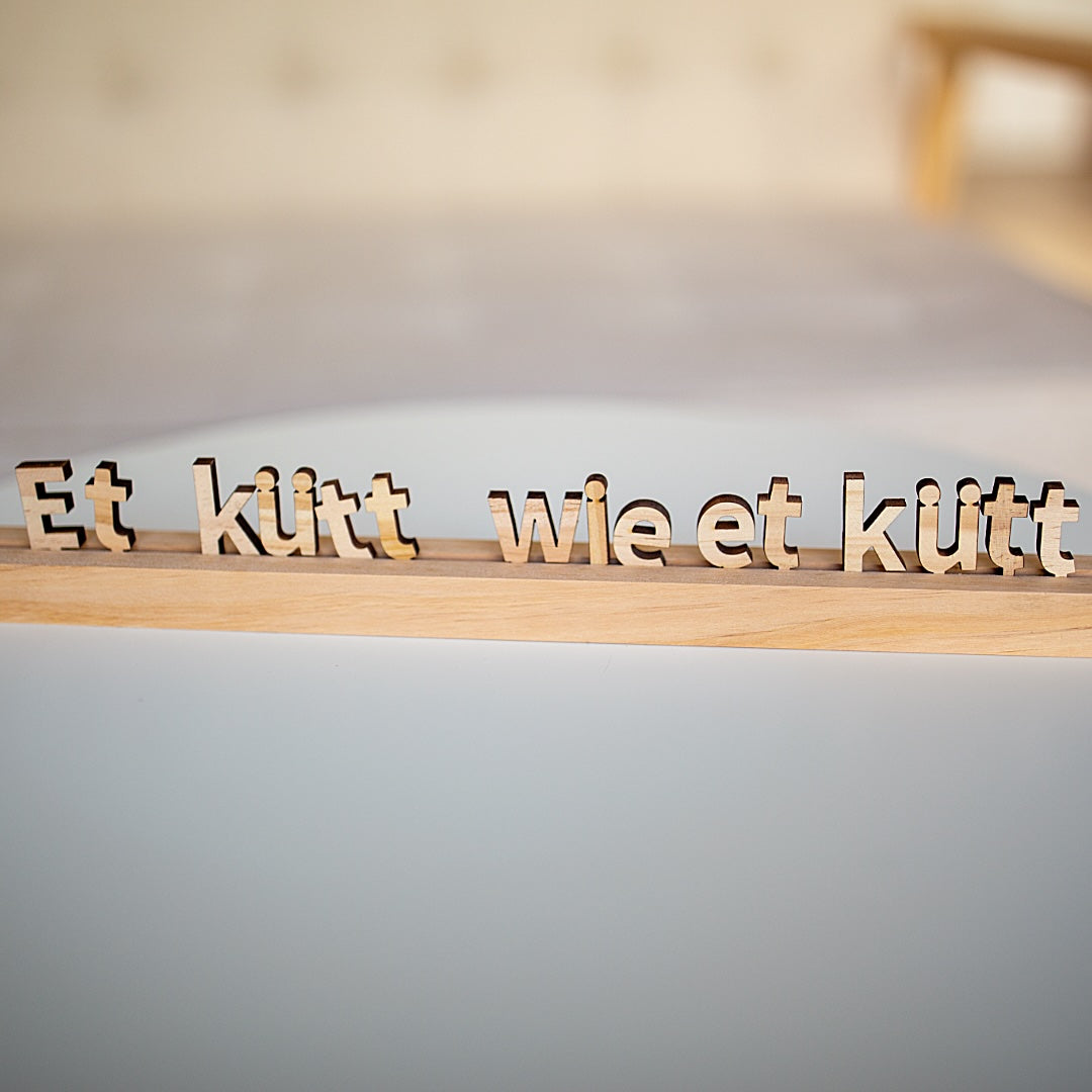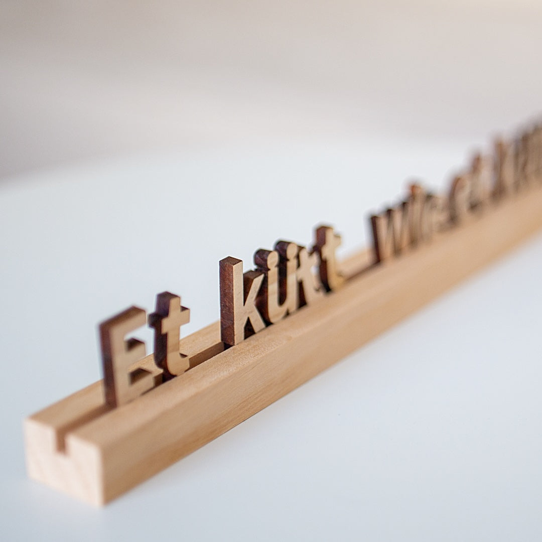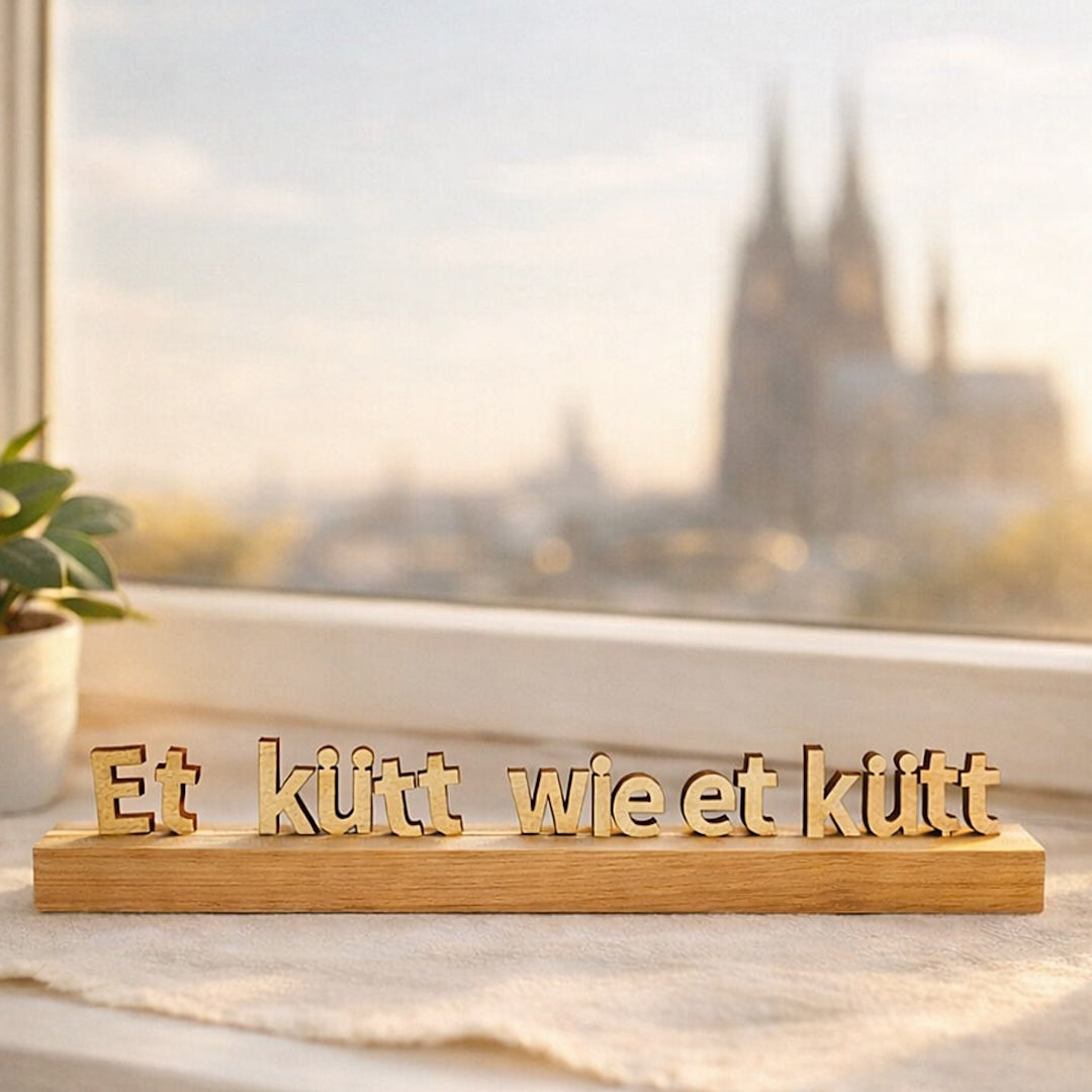 Kölsche Gelassenheit in einem Spruch: Den zweiten Paragraphen des kölschen Grundgesetzes gibt es jetzt als Spruch in Holz: