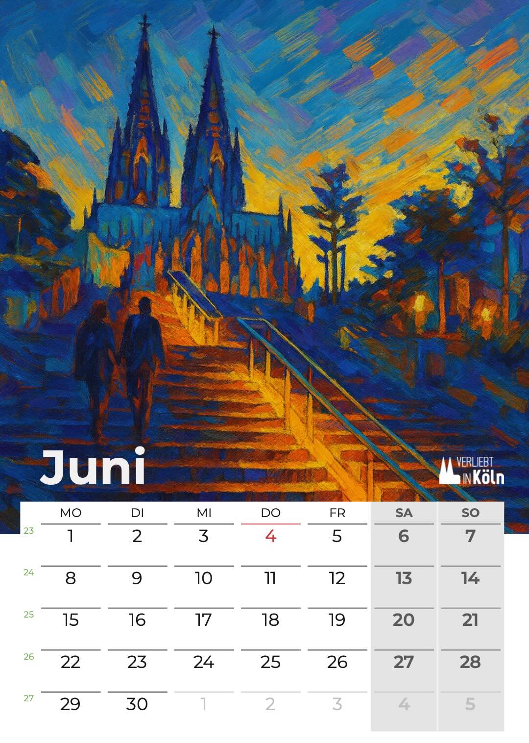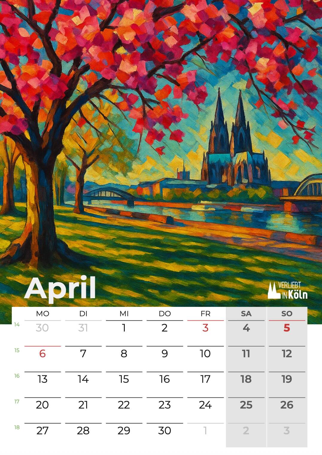 Die Motive des Kölner Kunstkalenders 2026 (DIN A4) vereinen impressionistische Farbintensität mit klarer Formensprache. Leuchtende, harmonisch abgestimmte Farben und dynamische Strukturen verleihen den Motiven eine moderne Tiefe – energiegeladen, warm und harmonisch.